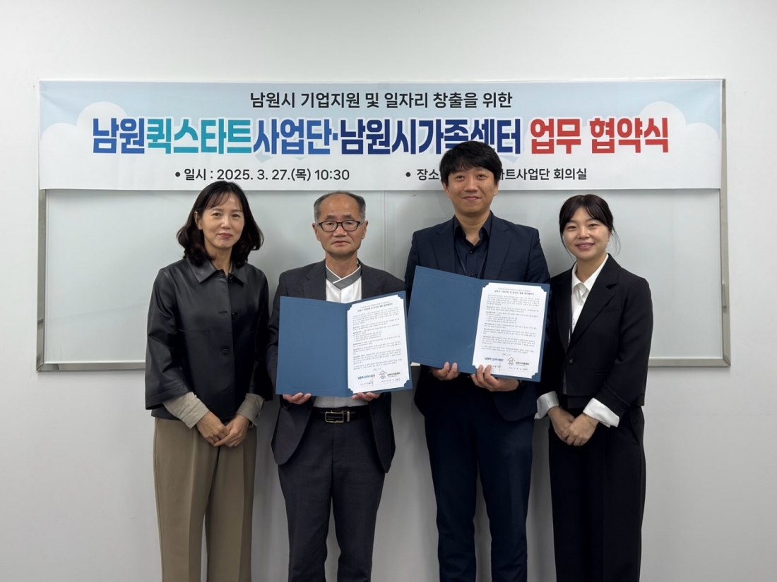 퀵스타트사업단 고경환 단장 역시 “이번 협약을 계기로 기업의 구인난을 해소하고, 신설·증설 기업들이 남원에 자리 잡고 사업을 확장할 수 있도록 남원시가족센터와 적극 협력하겠다”고 전했다.