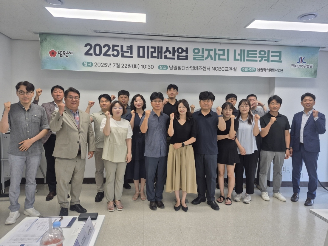 2025년 미래산업 일자리 네트워크 운영 관리자2025-07-23조회 180 * 남원형 퀵스타트 일자리네트워크 - 일시 : 2025. 07. 22(화) 10:30 - 장소 : 남원퀵스타트사업단 회의실 목록 이전글 신입직원을 위한 간식지원(주왕산업) 다음글 신입직원을 위한 간식지원(더조은워터)