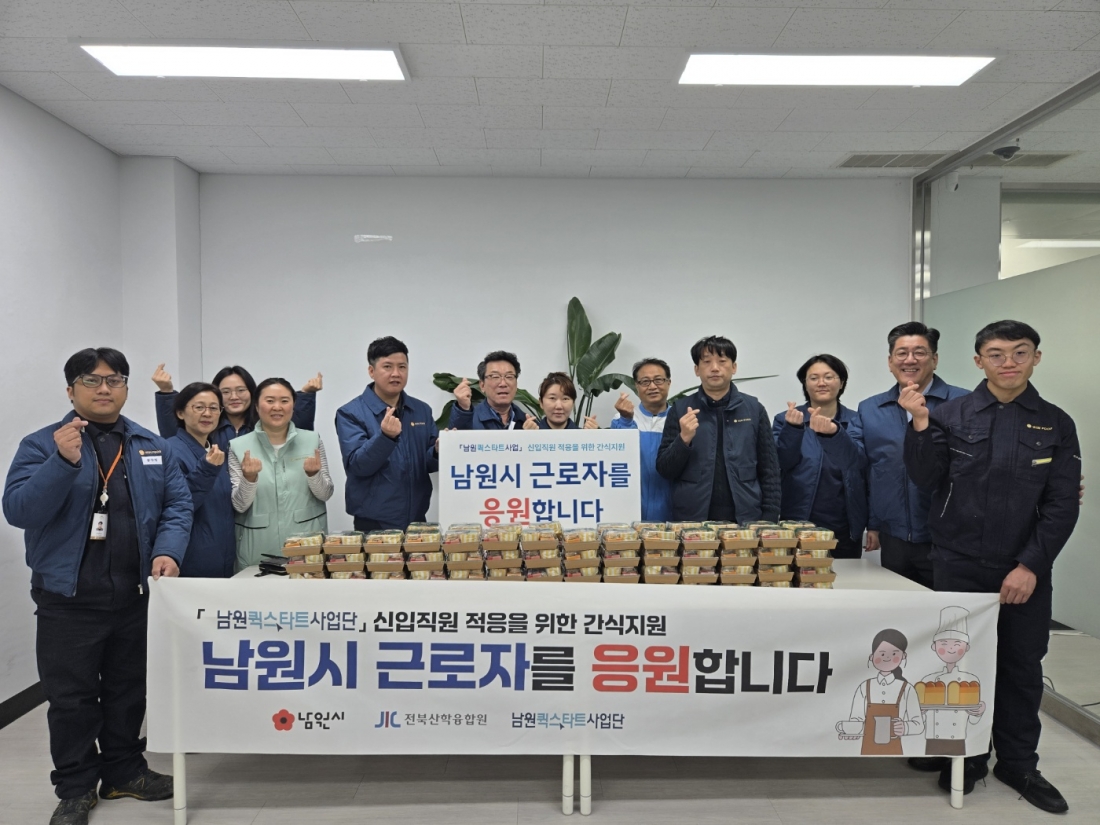 남원퀵스타트사업단(단장 고경환)은 12월 9일, 지역기업 (주)윈푸드 근로자 82명을 대상으로 신입직원 적응을 위한 간식지원 프로그램을 진행했다고 밝혔다.